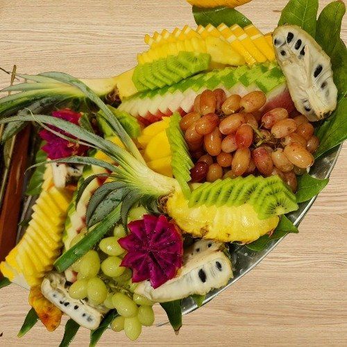 - אירוע גדול (50 אורחים ומעלה) – מגש פירות לאירועים או מגשי פירות בגודל של 60x80 ס"מ או יותר, בהתאם לצורך.