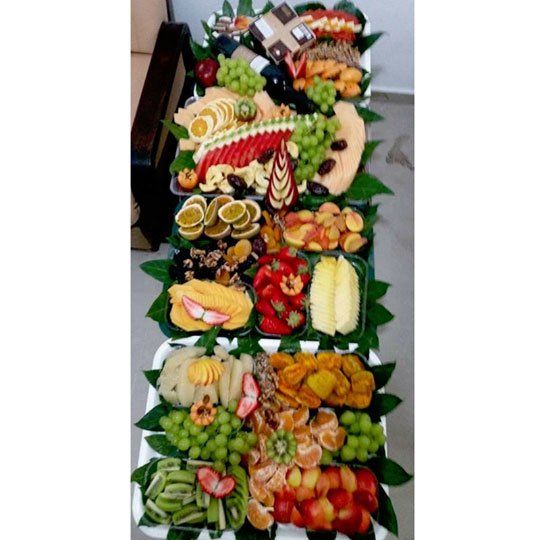 עיצוב מרשים: פירות נחתכים ומסודרים בצורה אומנותית, לעיתים בצורת פרחים, לבבות או עיצובים אחרים שמתאימים לאופי האירוע.